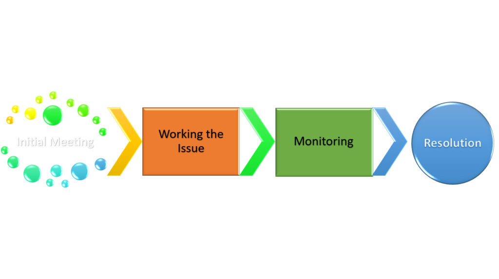 At this stage the issue that was highlighted in Stage 1 has been addressed, and the focus switches to continued development and ensuring that the client does not regress. During this stage sessions will become less frequent, with more of an emphasis on monitoring progress.